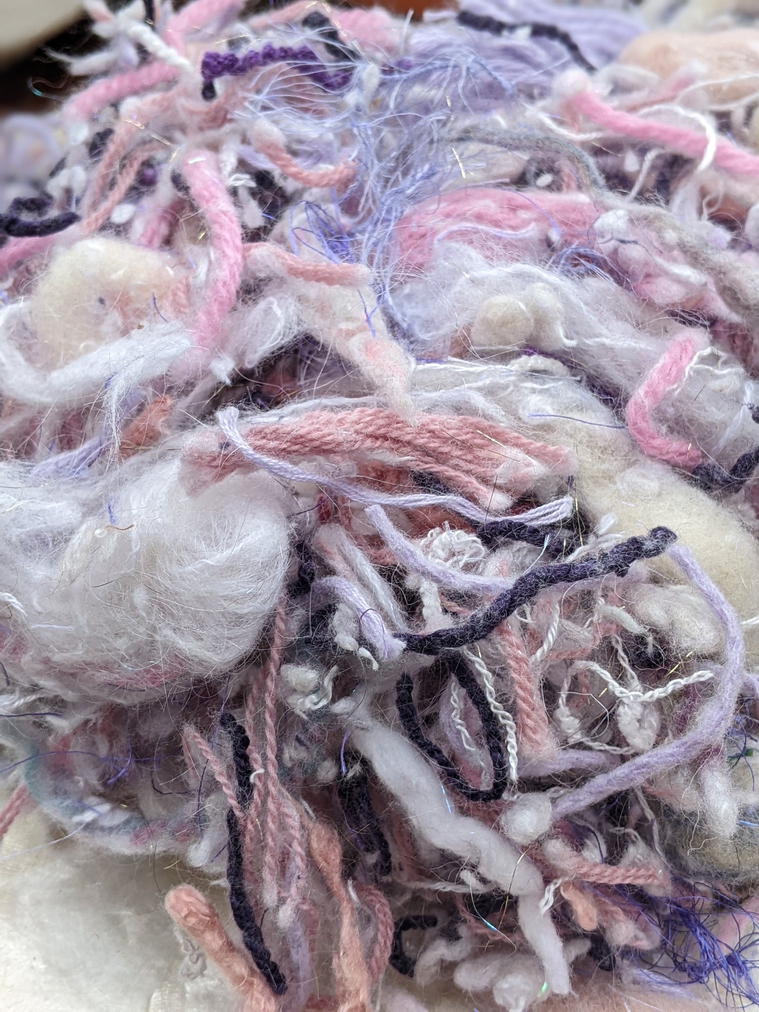 Unique textures to use in your weavings - including recycled hand-cut ribbons,...