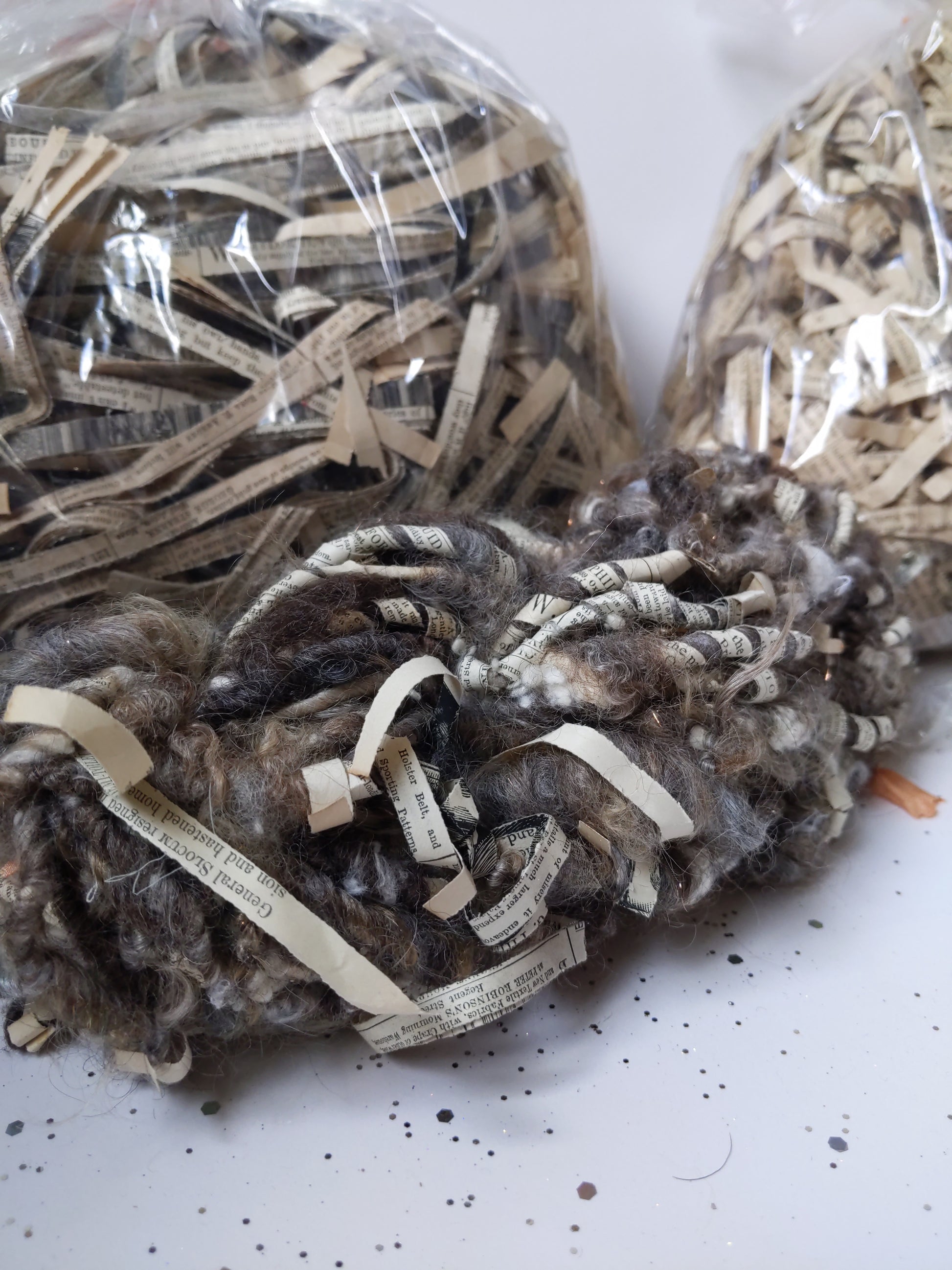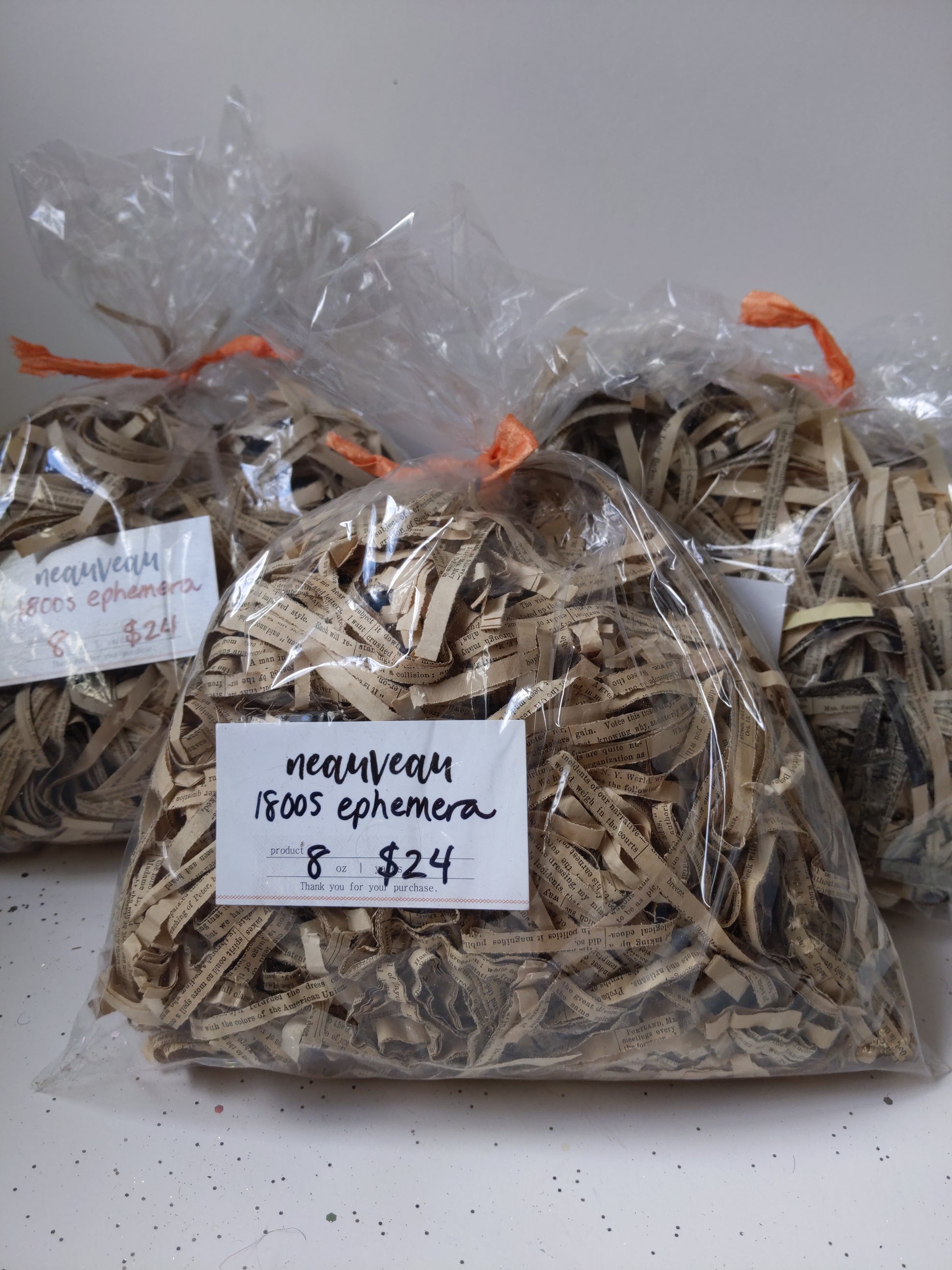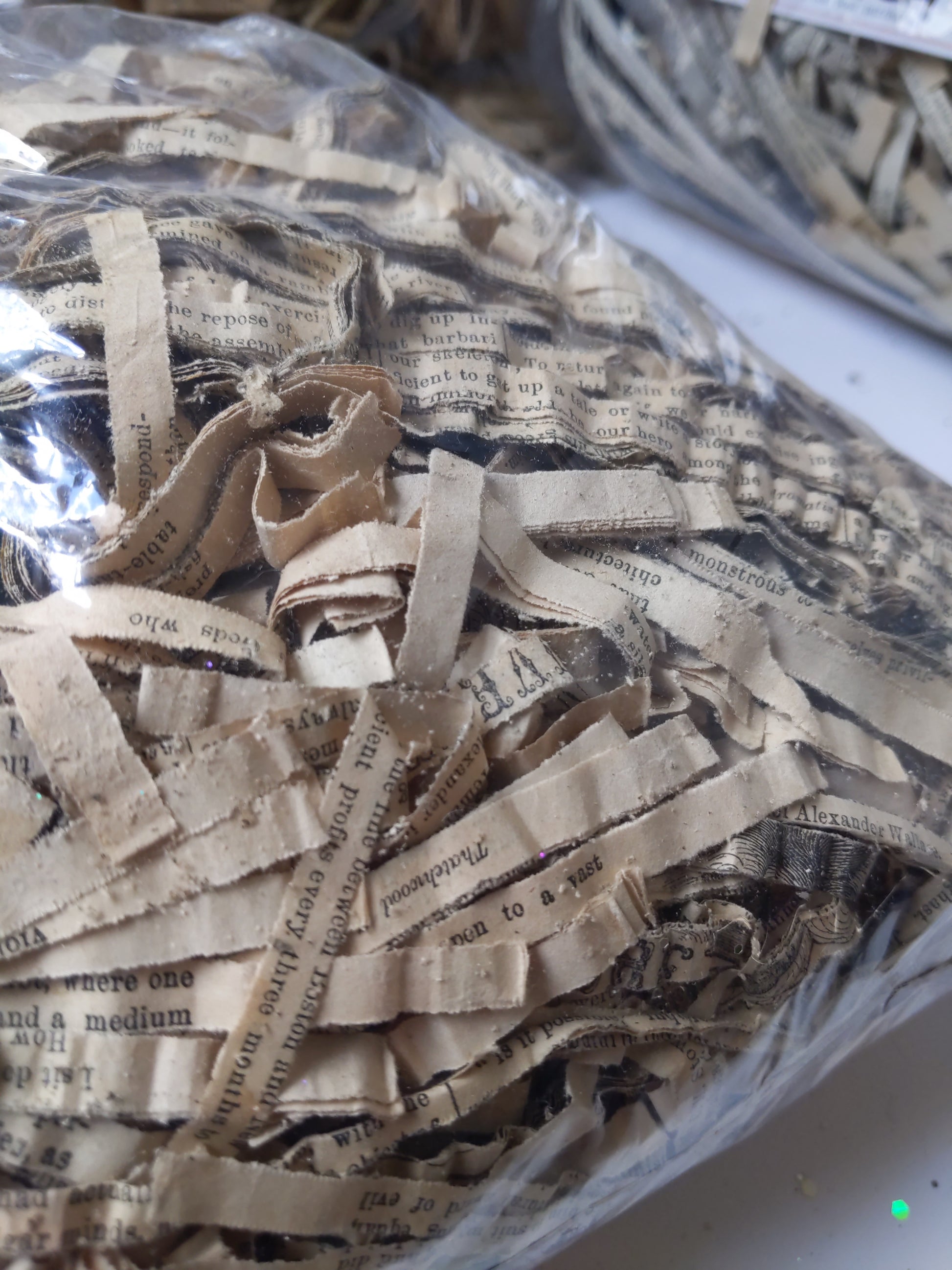 Shredded in our Texture Apothecary studio, each bundle contains hundreds of paper ribbons: browned edges, faded ink, fragments of forgotten stories, and whispers of a time long past.