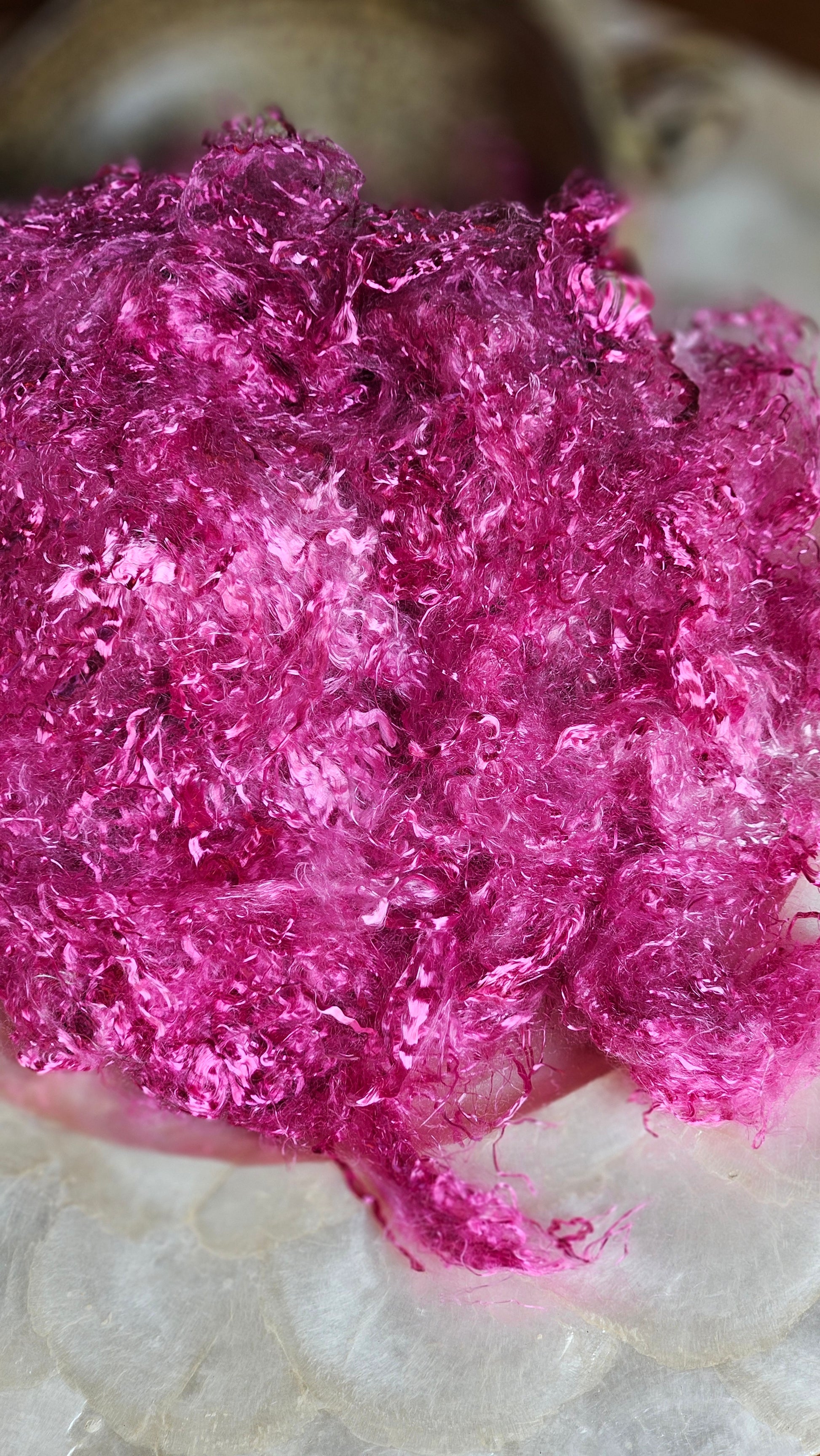 Hand-dyed eucalyptus crimp fiber with silky soft luminescent crimped texture - and perfect for spinning, felting, and papermaking. Sustainably sourced, vegan, plant-based, and artist-dyed in small batches